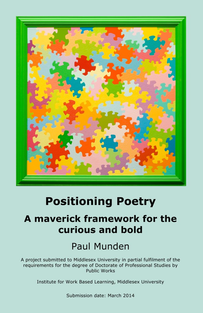 This context statement formed part of my professional doctorate, undertaken at Middlesex University (2014). My focus is on the mutually beneficial roles of poet and poetry entrepreneur. I explore how my personal development as a poet has interacted with other fields of practice (including science) and running a national writers’ organization concerned particularly with education. I demonstrate why “fields of practice” are sometimes considered in too separate a manner, and how poetry can play a role in connecting them, translating from one domain to another.